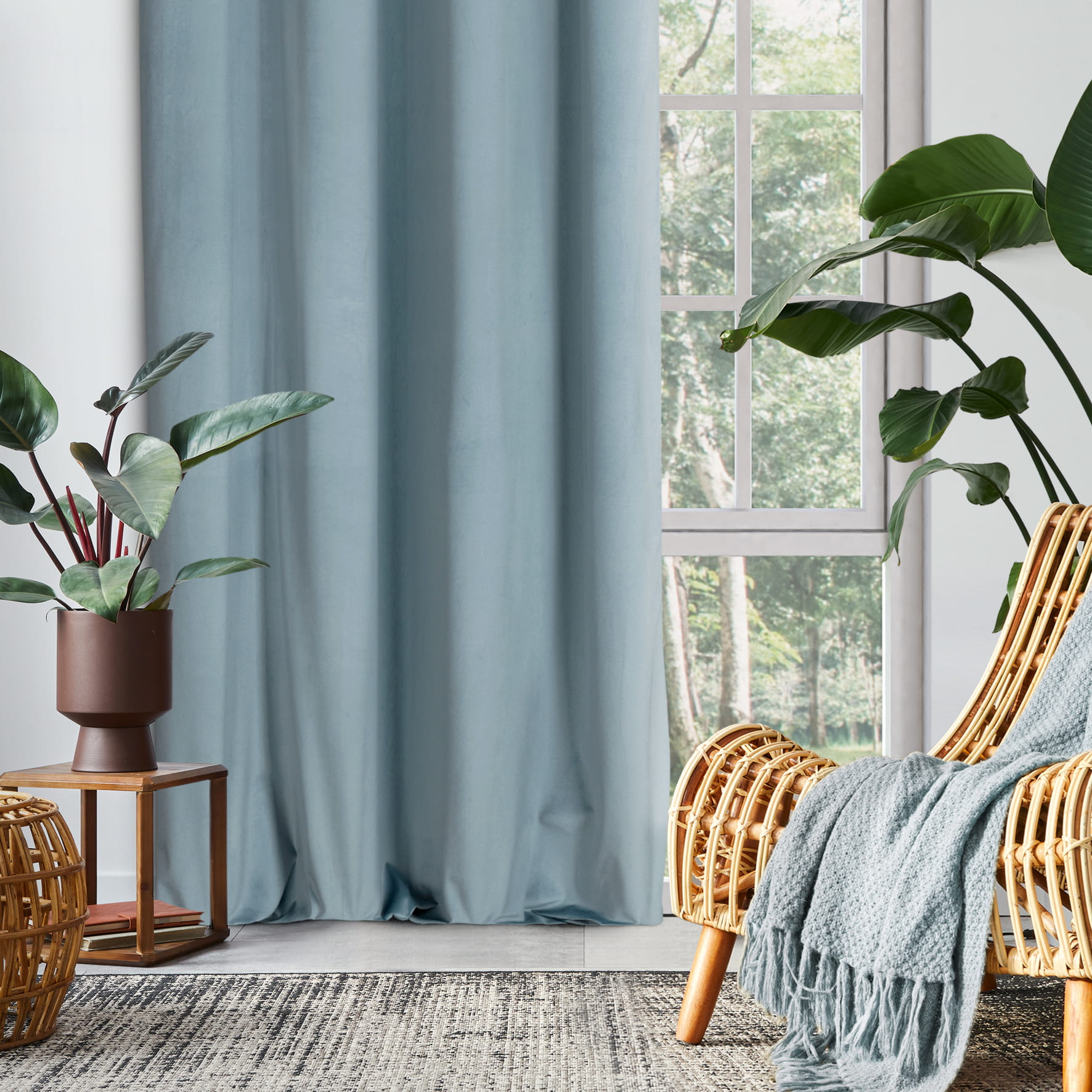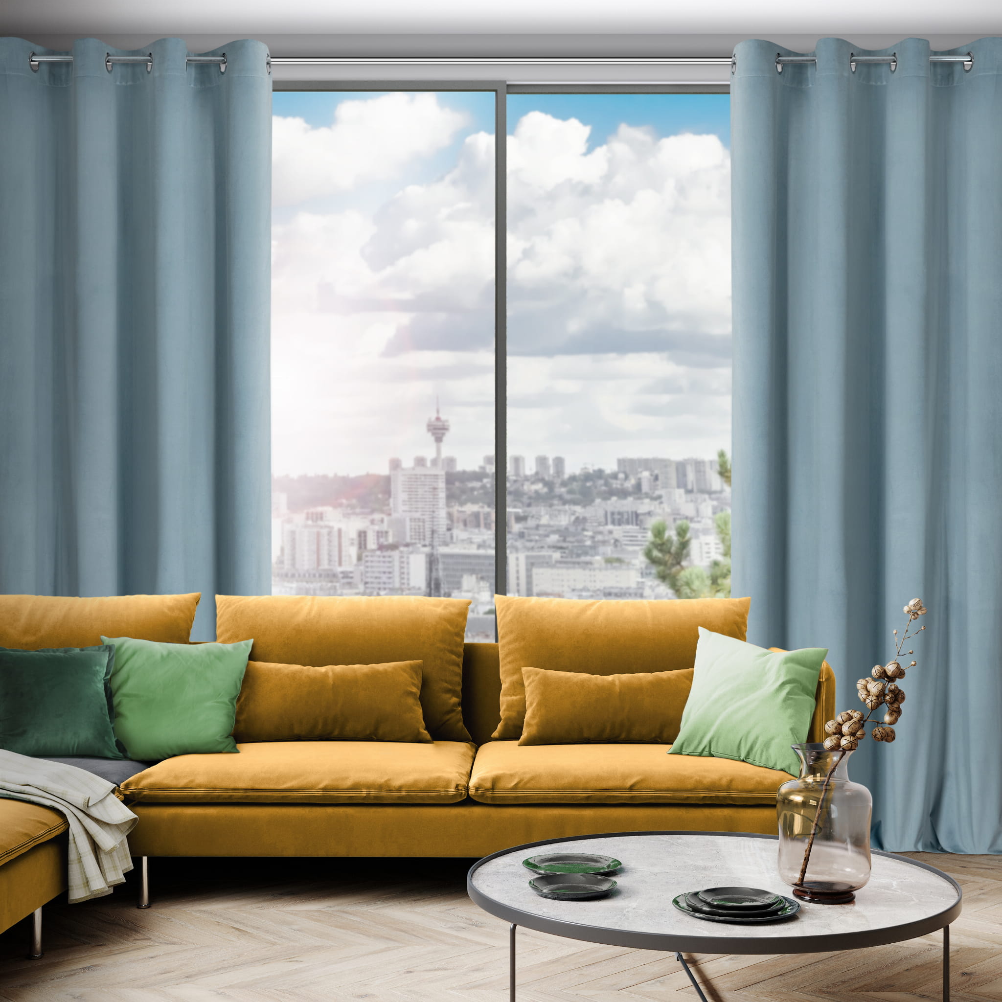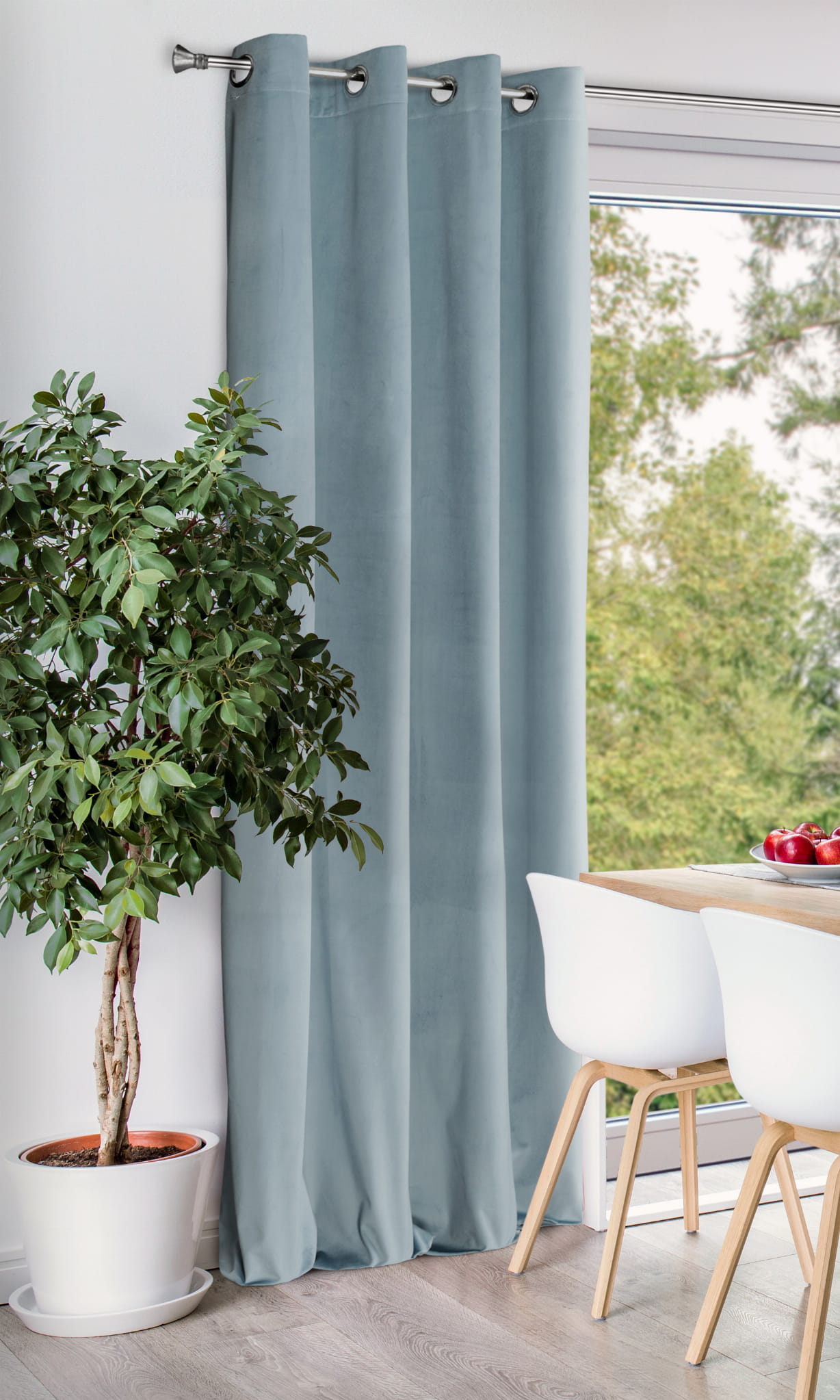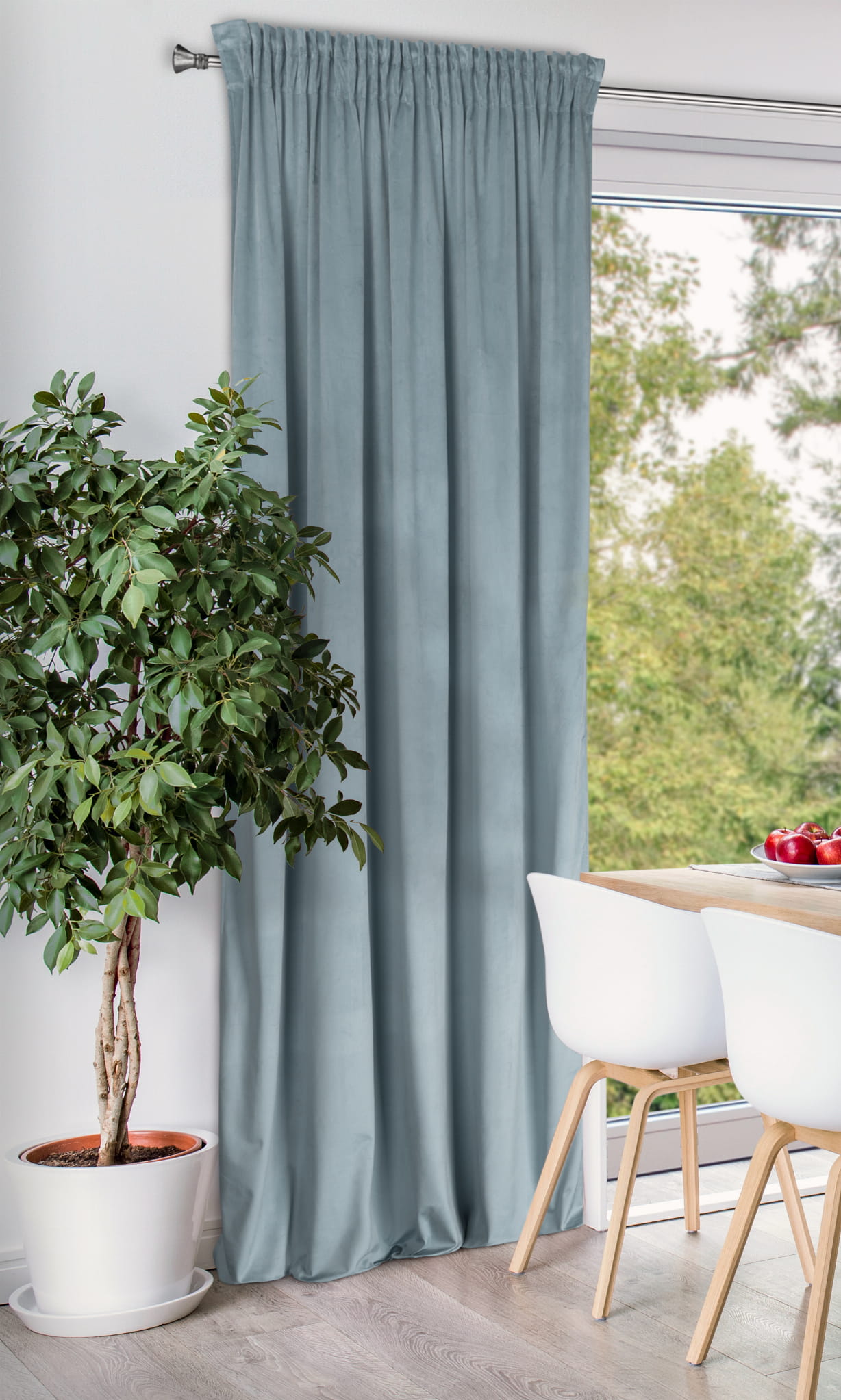 - Dzięki swojej gęstości tkanina świetnie kryje okno, zapewniając ochronę przed promieniami słonecznymi w ciągu dnia i skuteczną prywatność wieczorami. Aksamitna przyjemna w dotyku struktura nadaje zasłonie elegancji, tworząc jednocześnie efektowną dekorację dla Twojego okna.